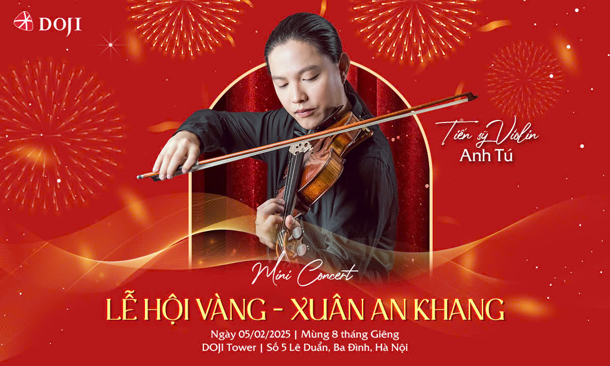 Tiến sĩ Violin Anh Tú (Tú Xỉn) là gương mặt sáng giá trong dàn line-up của Mini Concert Lễ hội Vàng – Xuân An Khang. Không chỉ mang đến những bản violin du dương, anh còn kết hợp cùng màn trình diễn trang sức DOJI, hứa hẹn tạo nên một không gian nghệ thuật tinh tế và cuốn hút.