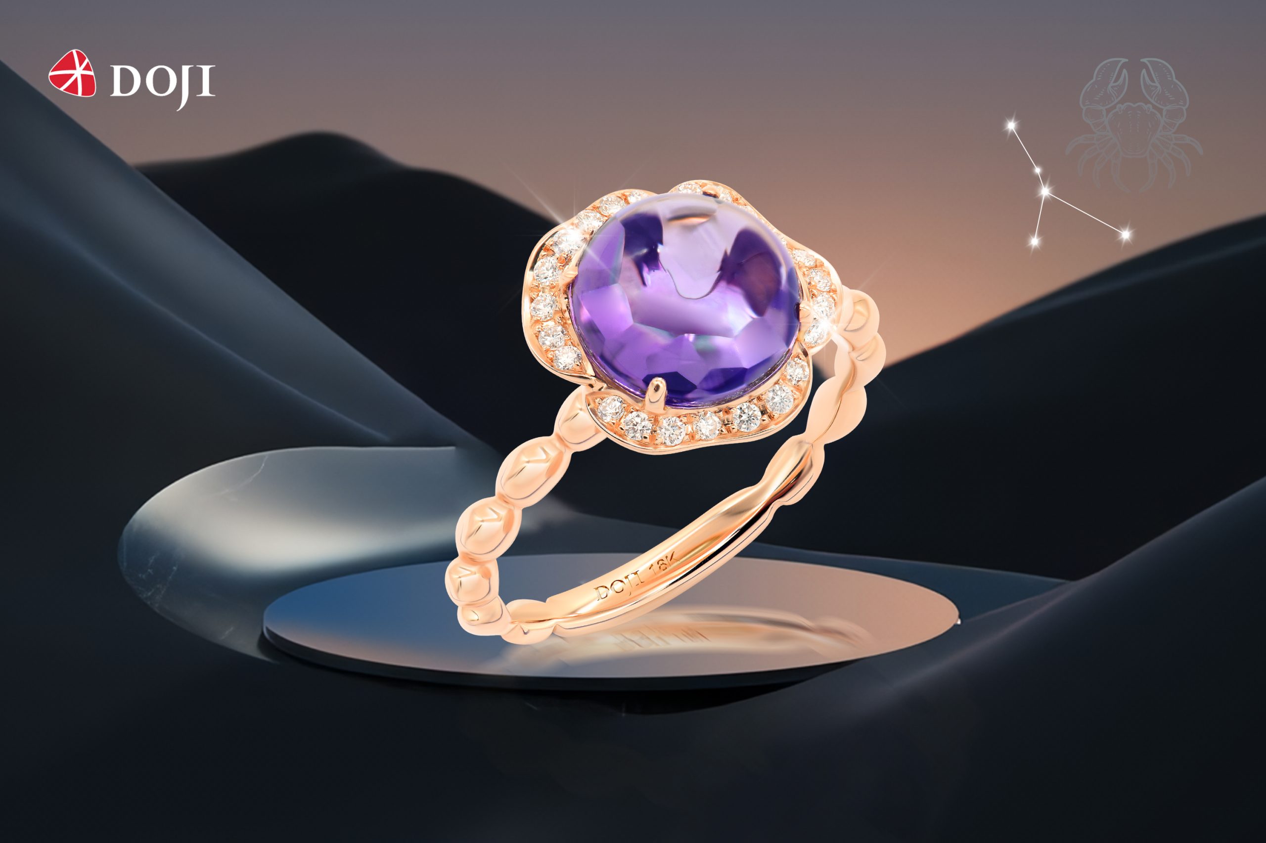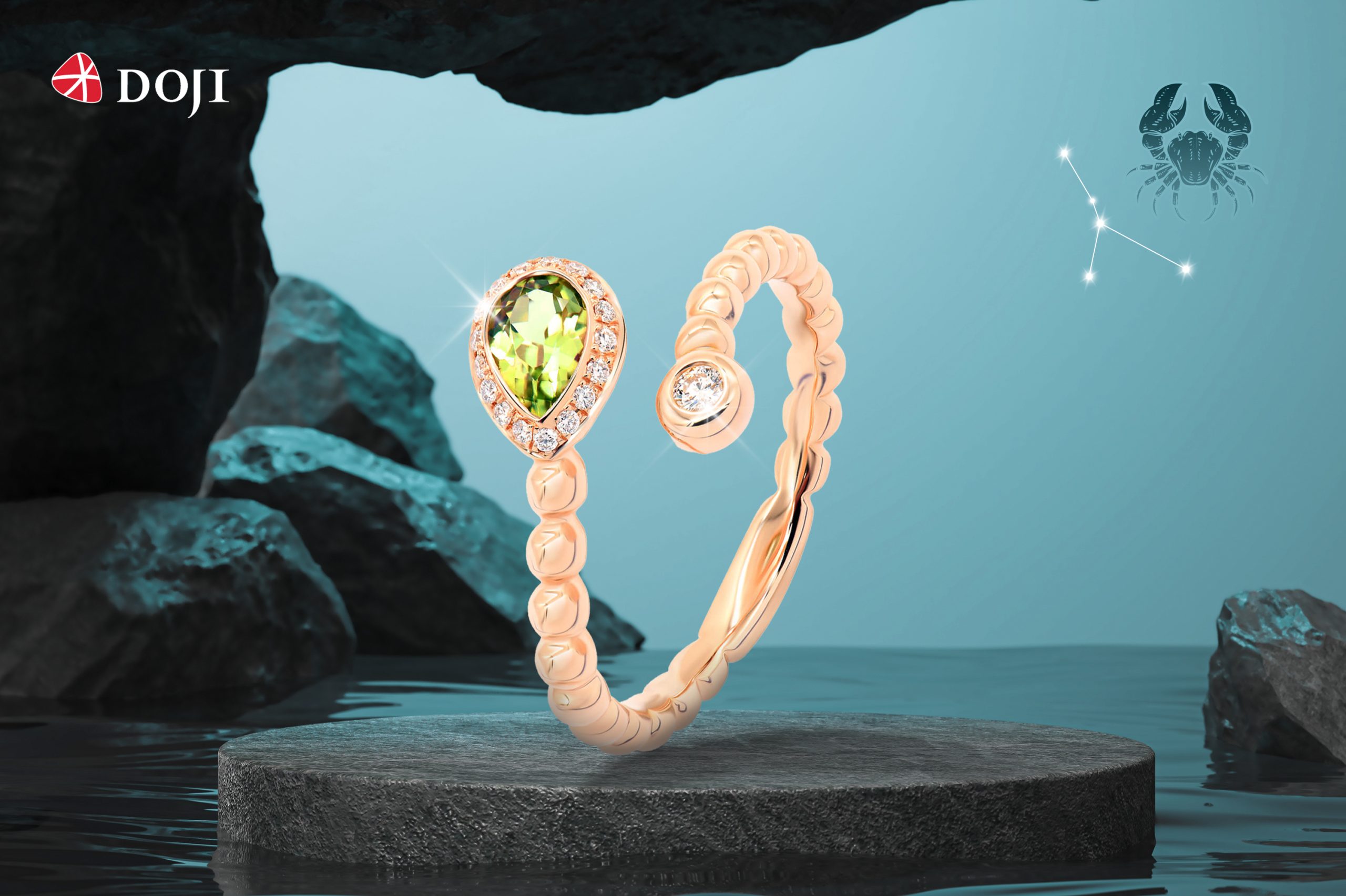 Các cô nàng Cự Giải hãy luôn giữ bên mình “bảo bối” là những viên đá phong thủy hỗ trợ cho cảm xúc, trí tuệ cũng như sự may mắn, tình yêu thương. DOJI mang đến các thiết kế trang sức đá màu: Peridot, Amethyst, Ruby cho nàng thỏa sức chọn lựa!
