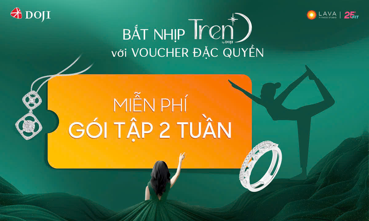 Đồng thời, khách hàng của LAVA | 25 FIT sẽ nhận được Gift Voucher trị giá 2.000.000 đồng khi mua sắm các sản phẩm thuộc dòng trang sức TrenD by DOJI. Voucher được sử dụng song song với các chương trình ưu đãi khác đang triển khai tại DOJI. Gift Voucher TrenD không được quy đổi thành tiền mặt với thời hạn sử dụng đến hết ngày 20/02/2026.