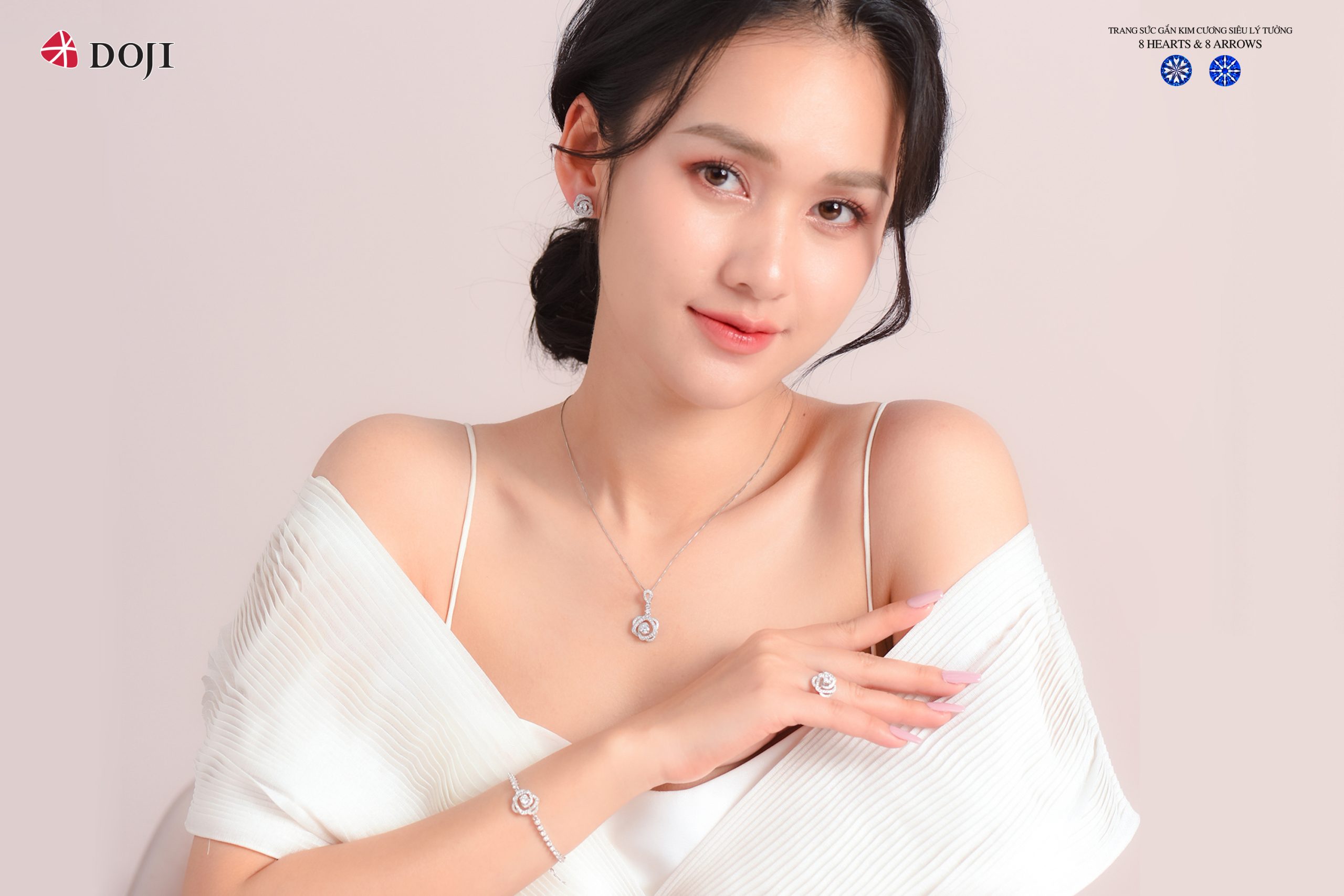 Thiết kế nổi bật với viên kim cương siêu lý tưởng quý hiếm, sở hữu hiệu ứng 8 trái tim và 8 mũi tên không chỉ giúp tô điểm diện mạo thêm sang trọng, cuốn hút mà còn khéo léo thể hiện vẻ đẹp nội tâm bên trong của chủ sở hữu.