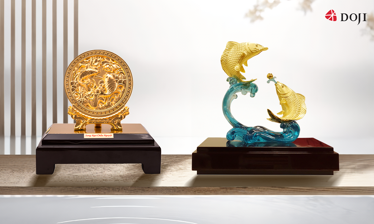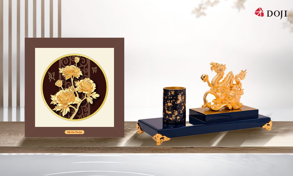 Bên cạnh đó, các mẫu tranh phủ vàng Kim Bảo Phúc cũng là một lựa chọn gọn – nhẹ để dành tặng sếp hay đối tác mang vẻ đẹp thanh lịch, mềm mại và đầy khí chất. Những bức tranh “Mã Đáo Thành Công”, “Cửu Ngư Cát Tường”… được chạm khắc hoa văn uyển chuyển, sang trọng gợi lên hình ảnh sự nghiệp thành đạt một cách đầy tinh tế.