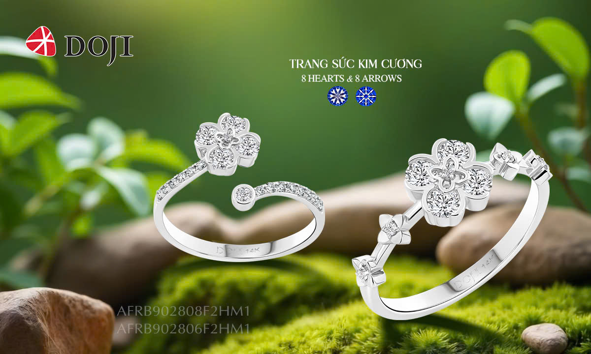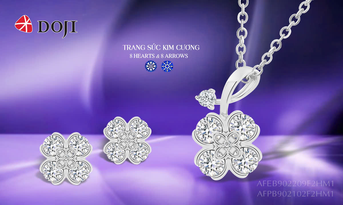 Bên cạnh viên kim cương chủ tỏa sáng, thiết kế cũng đóng góp một vai trò quan trọng đế quyết định đây chính là món quà “tự thưởng” đáng giá. Sản phẩm trang sức kim cương 8 Hearts & 8 Arrows mới từ DOJI nổi bật với thiết kế cỏ 4 lá được kết từ cụm 4 viên kim cương ghép khéo léo vừa duy mỹ, vừa mang ý nghĩa may mắn và viên mãn. Đặc biệt, nền vàng trắng trẻ trung, từng viên kim cương có kích thước từ 2-2.5mm lại có khả năng thu hút ánh nhìn nhờ độ lấp lánh vượt trội – đủ để nàng rực rỡ suốt ngày dài, dù là trong một buổi họp đầu tuần hay khoảnh khắc thư thả lúc hoàng hôn.