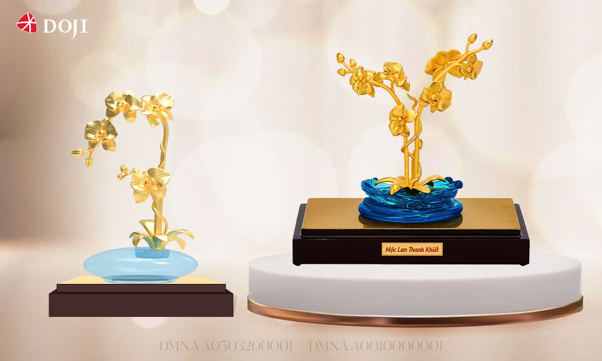 Nếu hoa hồng là hiện thân của tình cảm nồng nàn, thì hoa lan lại đại diện cho trí tuệ, phẩm hạnh và sự thanh cao – những đức tính gắn liền với người thày. Bộ sưu tập Hồ Điệp Phúc Thuận, Kim Lan Gia Hòa và Mộc Lan Thanh Khiết mang đến vẻ đẹp tinh tế, sang trọng, đồng thời chứa đựng thông điệp phong thủy sâu sắc. Hồ Điệp Phúc Thuận tượng trưng cho sự thuận lợi, thăng tiến và viên mãn, thể hiện niềm tin vào con đường tri thức luôn rạng ngời. Kim Lan Gia Hòa mang năng lượng của sự gắn kết và thịnh vượng, như lời chúc phúc an khang đến những người đã dành trọn tâm huyết cho sự nghiệp trồng người. Trong khi đó, Mộc Lan Thanh Khiết là biểu tượng của tâm hồn thuần khiết và sự tận tụy, phản chiếu hình ảnh người thầy, người cô luôn kiên định với lý tưởng và lòng yêu nghề. Mỗi tượng vàng hoa lan là một tác phẩm nghệ thuật được kết tinh từ bàn tay tài hoa và tấm lòng trân trọng, trở thành món quà vinh danh người gieo tri thức một cách tinh tế và đầy ý nghĩa.